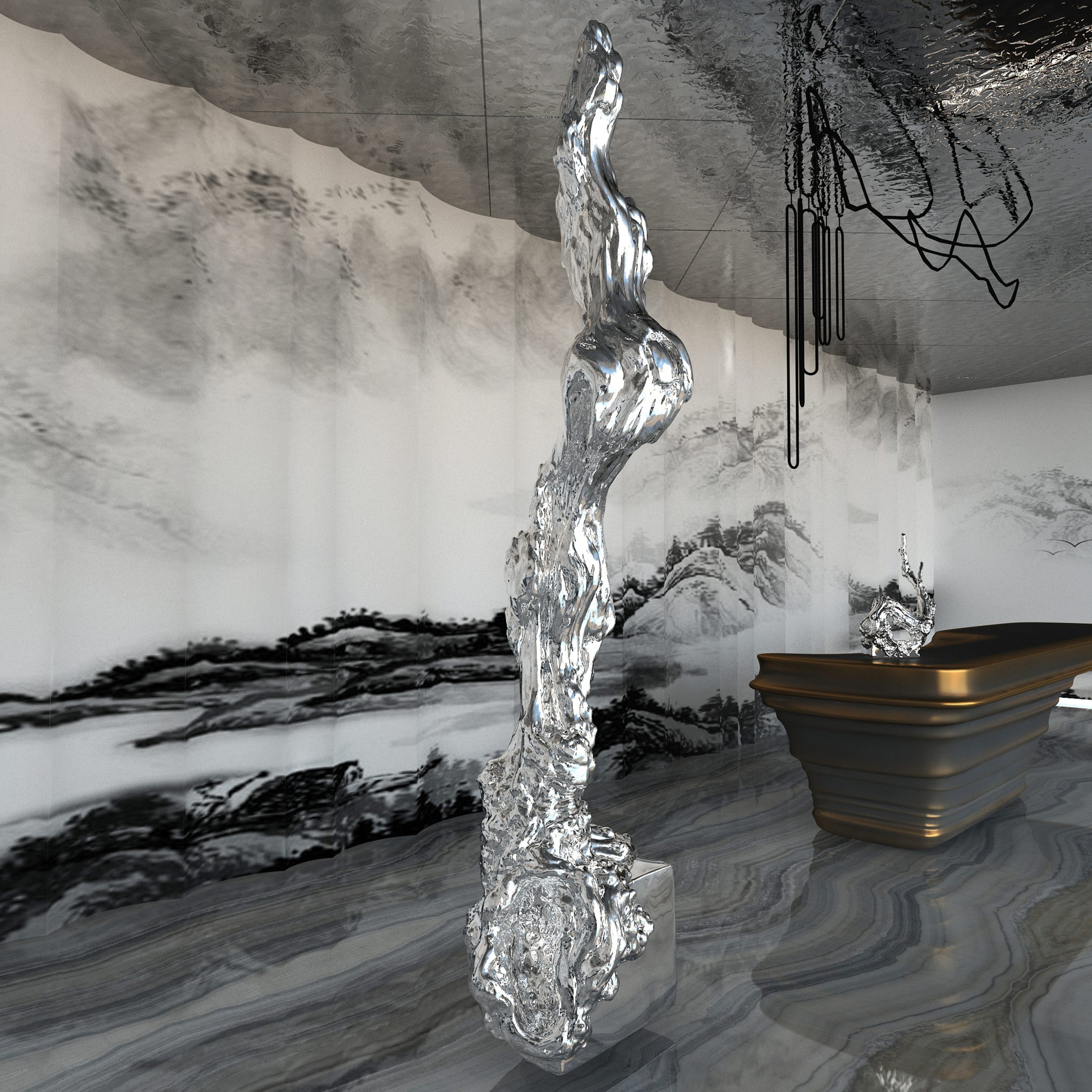 Love it or hate it, you are not going to miss its over 8 foot height sculpture of dramatic presence. Sand cast and polished by hand stainless steel. We present you ‘Natural Breath’, a truly magnificent piece of sculptural art. Suitable for indoors or outdoors.